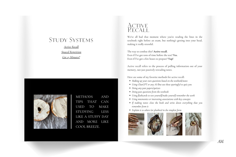• Proven study systems like active recall, spaced repetition, and 15 minute method — simplified for daily use.